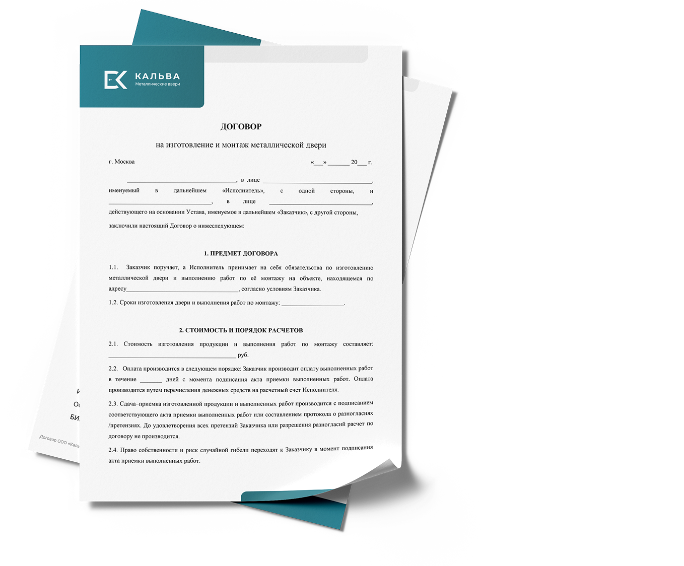«Двери Кальва» — это собственное производство металлических входных дверей полного цикла. С 2004 года мы изготавливаем и устанавливаем двери в Дмитрове и Московской области, обеспечивая высший уровень качества. Мы предлагаем решения для квартир, частных домов, коммерческих объектов и промышленных помещений: от стандартных моделей до эксклюзивных дверей на заказ по вашему проекту.